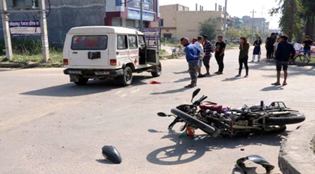 एम्बुलेन्स और मोरटरसाइकिल टकराने से एक की मौत, दो घायल
