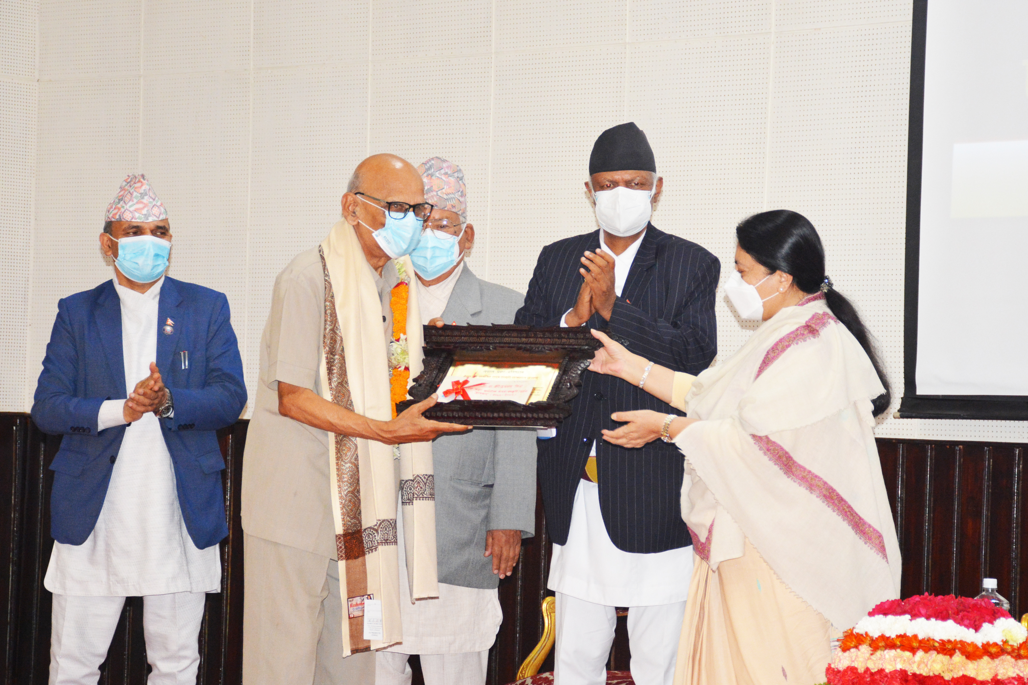 काठमांडू, १८ जुलाई । पूर्व निर्वाचन आयुक्त एवं नागरिक अगुवा प्रा.डा. वीरेन्द्र प्रसाद मिश्र ‘नेपाल प्रज्ञा समाजिकशास्त्र-संस्कृति-दर्शनशास्त्र पुरस्कार’ से पुरष्कृत हुए हैं । नेपाल प्रज्ञा प्रतिष्ठान द्वारा जुलाई १४, २०२१ के दिन राष्ट्रपति भवन शीतल निवास में आयोजित ‘प्रज्ञालंकार, प्रज्ञा पुरस्कार तथा राष्ट्रीय कविता महोत्सव पुस्कार अर्पण समारोह’ कार्यक्रम में प्रा.डा. मिश्र को यह सम्मान दिया गया ।