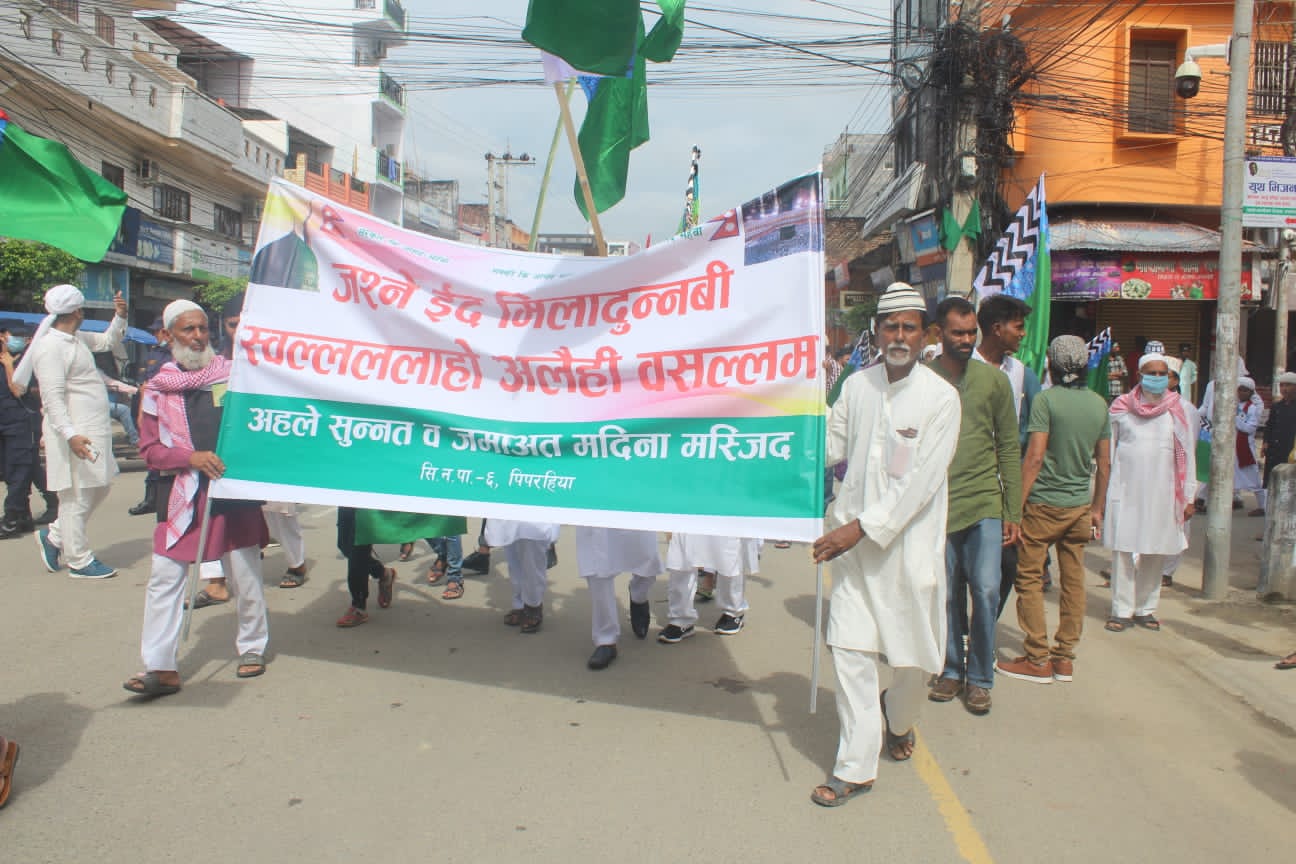 भैरहवा लगायत आसपास के क्षेत्र स्तिथ मस्जिद, मदरसा, धार्मिक संघ–संस्था तथा मुस्लिम सामुदायिक के आयोजना में मिलनचोक, बुद्धचोक, गल्लामण्डी लगायत विभिन्न जगहों से रैली निकाल कर नगर परिक्रमा कर मस्जिद एवम मदरसा में वापस लौटे ।