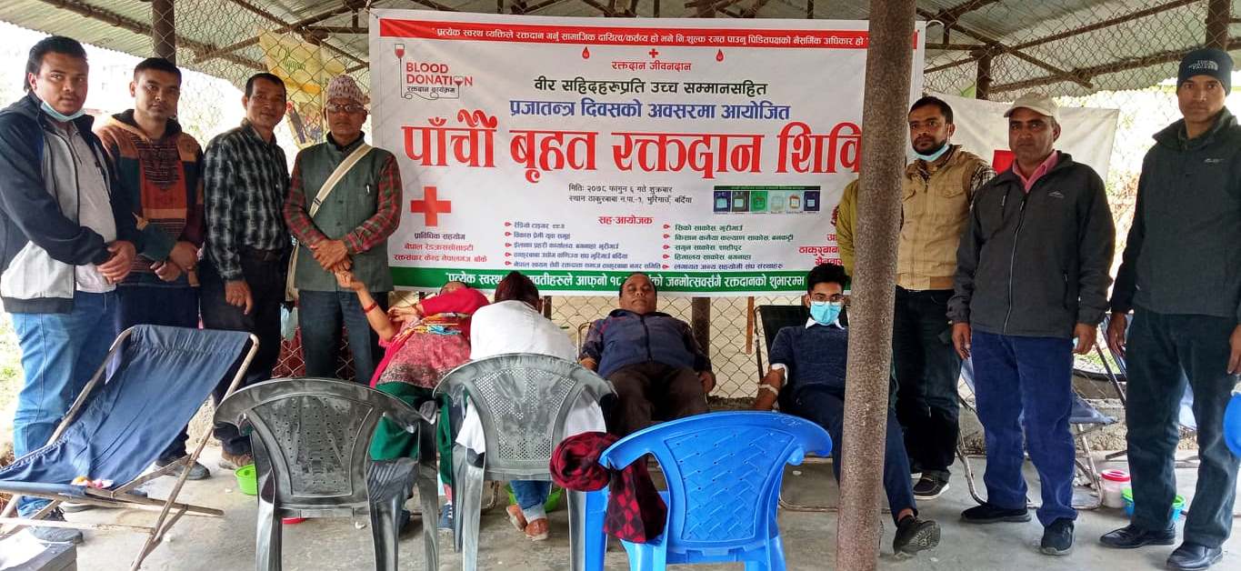 बर्दिया जिला में शहिदों के प्रति सम्मान सहित प्रजातन्त्र दिवस पर रक्तदान शिविर