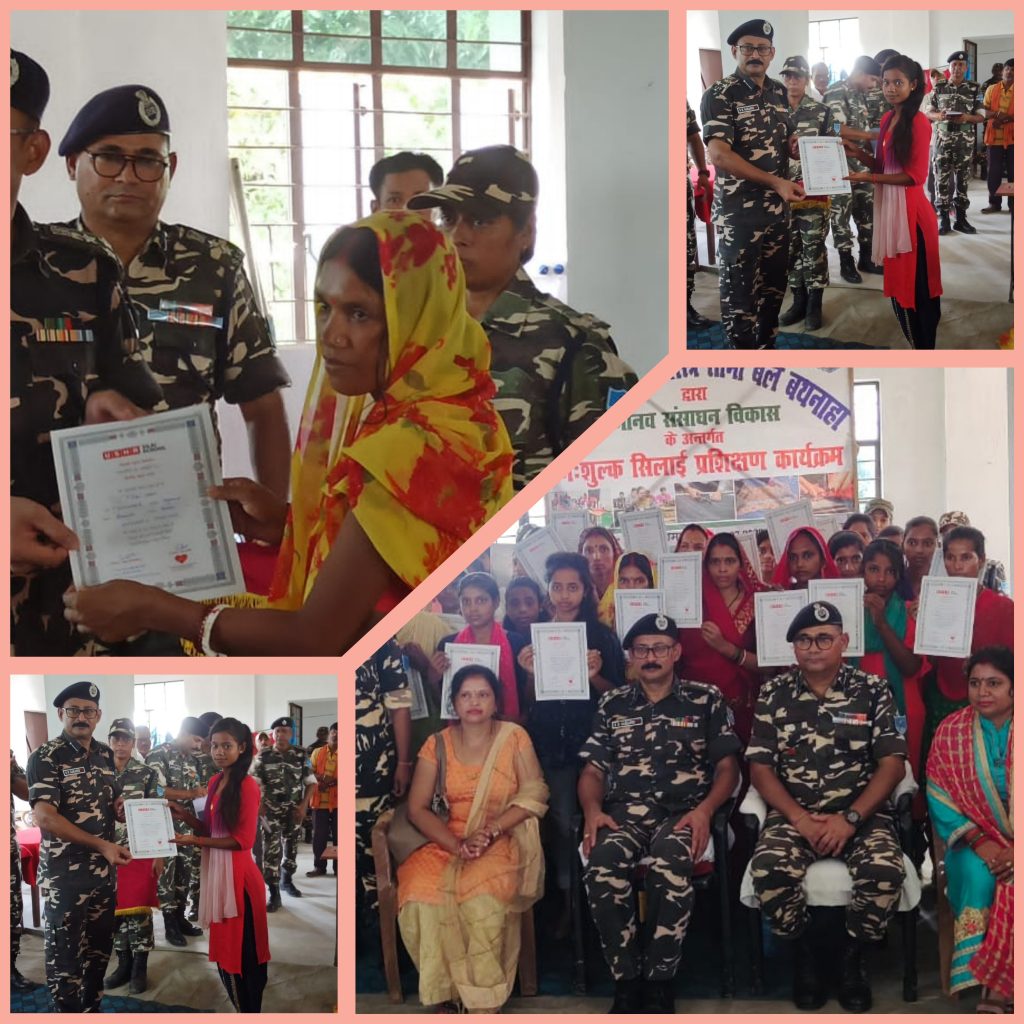 मंगलवार को 56वीं वाहिनी बथनाहा के कार्यक्षेत्र “बी” कंपनी कुशमाहा में सीमावर्ती बेरोजगार महिलाओं के लिए 30 दिनों की अवधि के लिए “निःशुल्क सिलाई प्रशिक्षण” कार्यक्रम का समापन समारोह किया गया। कार्यक्रम के मुख्य अतिथि श्री संजय कुमार सारंगी,DIG, SHQ पूर्णियां ने सफलतापूर्वक निःशुल्क सिलाई प्रशिक्षण प्राप्त करने के लिए समस्त महिला प्रशिक्षुओं को हार्दिक शुभकामनाएं एवं बधाई दिया। तथा श्री सारंगी ने बताया कि मैं आशा करता हूँ कि आपसभी इस प्रशिक्षण के बाद भी अपना अभ्यास नियमित करते रहेंगे तथा सशस्त्र सीमा बल द्वारा चलाये जा रहे कौशल विकास कार्यक्रम को सफल बनाने में अपना महत्वपूर्ण योगदान देंगे क्योंकि जब तक हमारी महिलाएं शिक्षित, कार्यकुशल व आत्मनिर्भर नहीं होंगी तबतक हमारे देश का सर्वांगीण विकास संभव नहीं है एवं उन्होंने बताया कि एस एस. बी. द्वारा नागरिक कल्याण कार्यक्रम के अंतर्गत निःशुल्क मानव एवं पशु चिकित्सा शिविर के अतिरिक्त स्कूली बच्चों के लिए खेल कूद सामग्री का वितरण एवं गरीब किसानों को कृषि यंत्र एवं बीज का भी वितरण किया जाता है । आपसभी निरंतर इन कार्यक्रम का लाभ लेते रहें। मौके पर उपस्थित 56वीं वाहिनी के कमांडेन्ट श्री सुरेन्द्र विक्रम ने आगंतुक समस्त सज्जन वृंद एवं मुख्य अतिथि का हार्दिक स्वागत एवं अभिनदंन किया तथा सीमावर्ती समस्त महिला प्रशिक्षुओं को शुभकामनाएं देते हुए कहा हमारा एस. एस. बी. परिवार सदैव आपसभी की सेवा के लिए तत्पर हैं। तथा श्री विक्रम द्वारा समस्त महिलाओं को CAPFs में जॉइन कर देश सेवा करने हेतु प्रेरित भी किया गया । यह कार्यक्रम “ऊषा सिलाई स्कूल” फारबिसगंज शाखा द्वारा दिनांक 29.07.2022 से कुशमाहा गांव में ही चलाया जा रहा था जिससे कि ग्रामीण महिलाएं अपने गाँव में ही रहकर सुविधापूर्वक प्रशिक्षण प्राप्त कर सके। कार्यक्रम के प्रारंभ में महिला प्रशिक्षु द्वारा इस प्रशिक्षण में जो सीखा उसके बारे अपने अनुभव बताते हुए कहा कि यह ग्रामीण महिलाओं के लिए अत्यंत ही उपयोगी है तथा भविष्य में इस तरह के और भी प्रशिक्षण करवाने हेतु अनुरोध किया गया । इस अवसर पर ऊषा सिलाई स्कूल, फारबिसगंज के प्रोपराइटर श्रीमती सविता ठाकुर द्वारा पिछले एक माह में पढ़ाये जाने वाले पाठ्यक्रम के बारे में विस्तारपूर्वक बताया गया । इस प्रशिक्षण से कूल 23 बेरोजगार महिलाओं को प्रशिक्षण दिया गया। मौके पर उपस्थित पिपरा गांव के मुखिया श्री गणेश लाल मंडल द्वारा एस. एस. बी. द्वारा आयोजित निःशुल्क सिलाई प्रशिक्षण की काफी सराहना की गई। उन्होंने कहा कि यह प्रशिक्षण हमारे गांव की बेरोजगार महिलाओं के लिए अत्यंत ही उपयोगी है जो कि इन्हें आत्म निर्भर बनाने में काफी कारगर साबित होगा। तथा इस प्रश