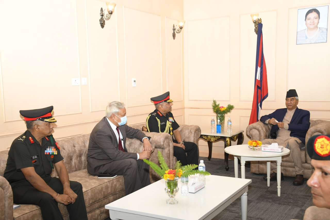 भारतीय सेनाका प्रमुख मनोज पाण्डेद्वारा सम्माननीय प्रधानमन्त्री शेरबहादुर देउवा के साथ शिष्टाचार भेटवार्ता