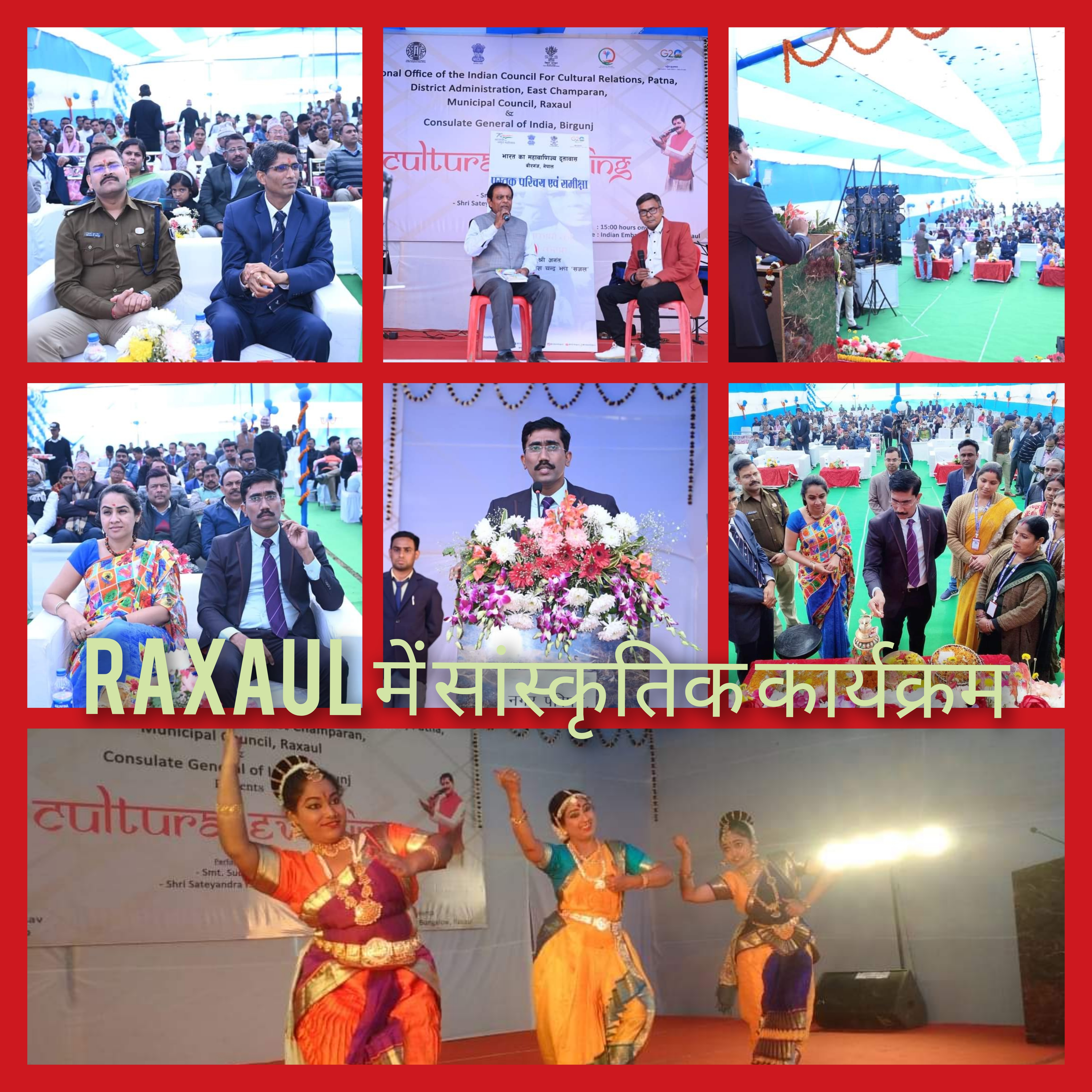 बीरगंज । भारत-नेपाल सीमा स्थित रक्सौल शहर के भारतीय महावाणिज्य दूतावास परिसर (राज डंडी) में शनिवार की संध्या सांस्कृतिक कार्यक्रम का आयोजन प्रशासनिक स्तर पर किया गया।