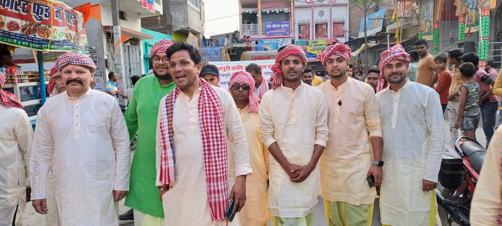सांध्य समय श्री दिलीप सिंह पत्रकार के निर्देशन में भव्य रंग परंपरा सांस्कृतिक जुलूस महाराजगंज के विभिन्न सड़क चौराहों से गुजारा तो शहर के लोगों में उत्साह और भोजपुरी के आंदोलन के प्रति एक अद्भुत उत्साह देखने को मिला। इस रंग जुलूस में भोजपुरी परिधान धोती कुर्ता और गमछा के साथ लगभग 200 प्रतिनिधि आकर्षण का केंद्र बने हुए थे जबकि बैलगाड़ी खोज सिंगर और विभिन्न प्रकार की जीवंत झांकियां बैंड बाजों के साथ शहर के लोगों को अपनी तरफ खींच रहे थे इस अद्भुत सांस्कृतिक रंग यात्रा में लगभग 1000 लोगों ने हिस्सा लिया।