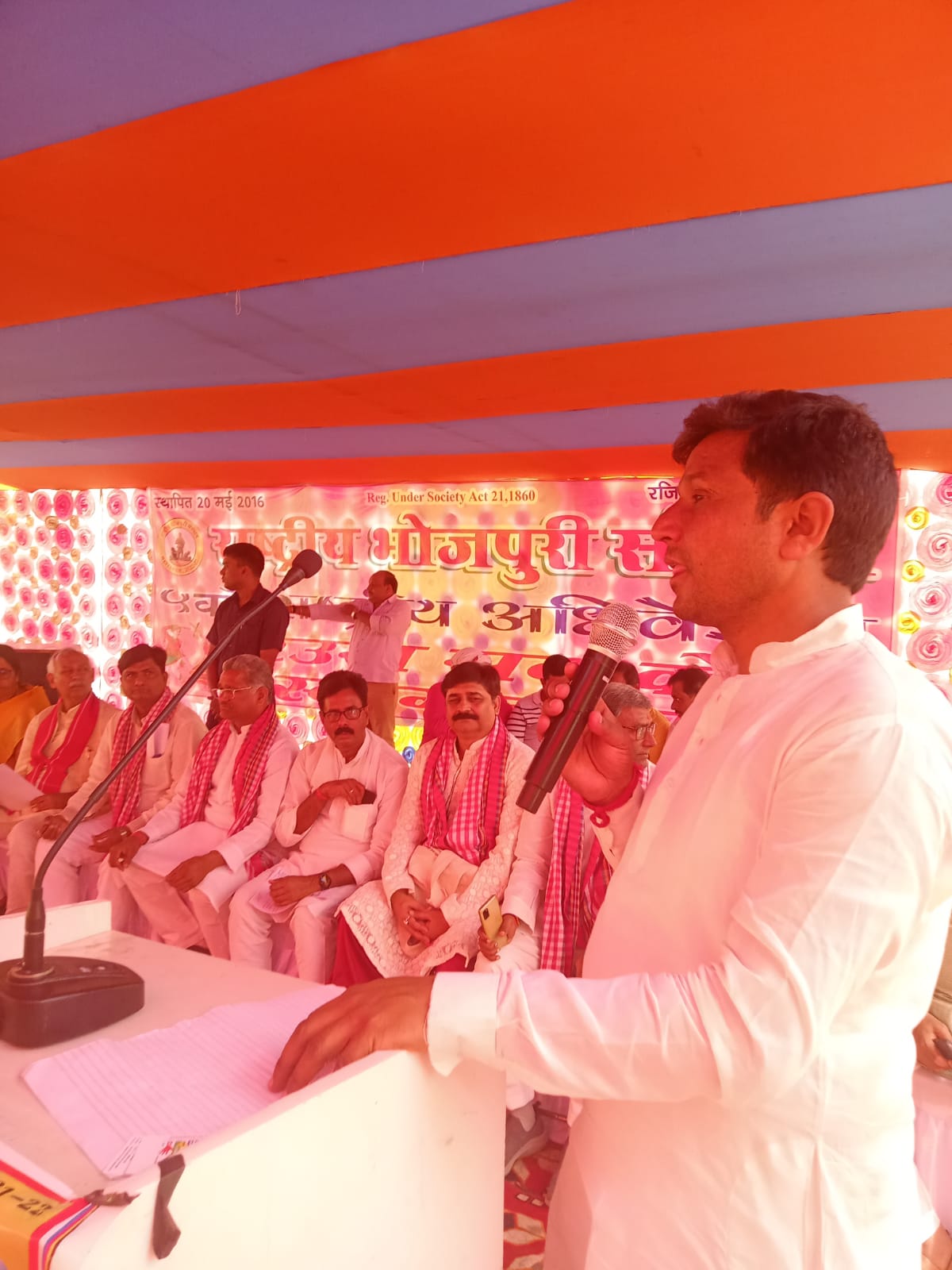 परमशिला बनिया,मर्चवार। राष्ट्रीय भोजपुरी संस्थान के पांचवा राष्ट्रीय अधिवेशन 8-9 अप्रैल को बड़े ही धूमधाम से संपन्न हुआ । इस आयोजन में मुख्य रूप से देश के 7 प्रदेश के भोजपुरी भाषा से जुड़े आंदोलन के प्रतिनिधि सहित नेपाल बिहार तथा उत्तर प्रदेश के 19 जिला के प्रतिनिधि ने भाग लिया । इस अधिवेशन में भोजपुरी भाषा को आठवीं अनुसूची में शामिल करने के लिए एक सुर से प्रस्ताव को पारित किया गया। अधिवेशन में मुख्य रूप से 5 प्रस्ताव पारित किए गए।