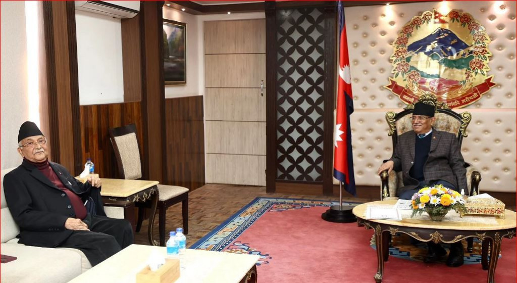 प्रचण्ड–ओली के बीच सिंहदरबार में बातचीत