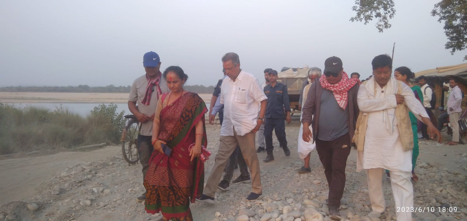 देशबन्धु यादव/नवलपरासी। नवलपरासी (पश्चिम) के सुस्ता गाँव पालिका अन्तर्गत नारायणी नदी के तटबन्ध का मरम्मत/निर्माण कार्य का भारत – उत्तर प्रदेश सरकार के सिंचाई मंत्री स्वतन्त्रदेव सिंह ने नारायणी नदी का तटबन्ध निर्माण कार्य का निरीक्षण किया। निरिक्षण के क्रम में ईन्जिनियर द्वय अनिल सिंह और रविन्द्र यादव ने निर्माण कार्य के सम्बन्ध में अवगत कराया।