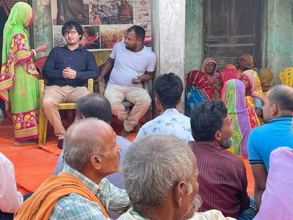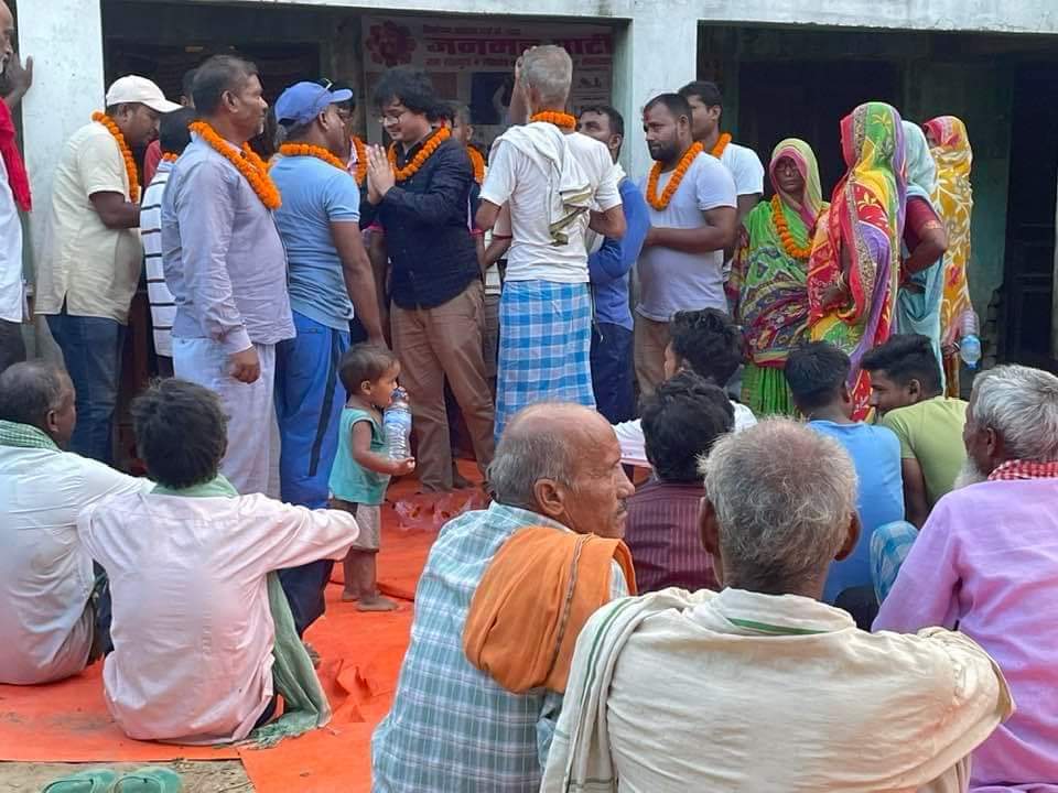 जनकपुरधाम/मिश्रीलाल मधुकर। गुरुवार को धनौजी गांवपालिका वार्ड ५बहुअर्वा गांव मेंडा.प्रसन्न झा के प्रमुख आतिथ्य तथा बिजय साह पर्यवेक्षक की उपस्थिति में तदर्थ समिति का गठन किया गया।इस अवसर पर सैकड़ों लोगों ने बिभिन्न पार्टी त्याग कर जनमत पार्टी की सदस्यता ग्रहण कीं। पार्टी प्रवेश करने वालों को डा.प्रसन्न झा ने माला पहनाकर कर स्वागत किया।सरोज मंडल की अध्यक्षता में ५१सदस्यीय बार्ड तदर्थ समिति तथा सलाहकार समिति भी गठन किया गया। मौके पर सुरेश साह, जनकपुरधाम नगर संयोजक रंजित राय सहित कई गणमान्य लोग उपस्थित थे।