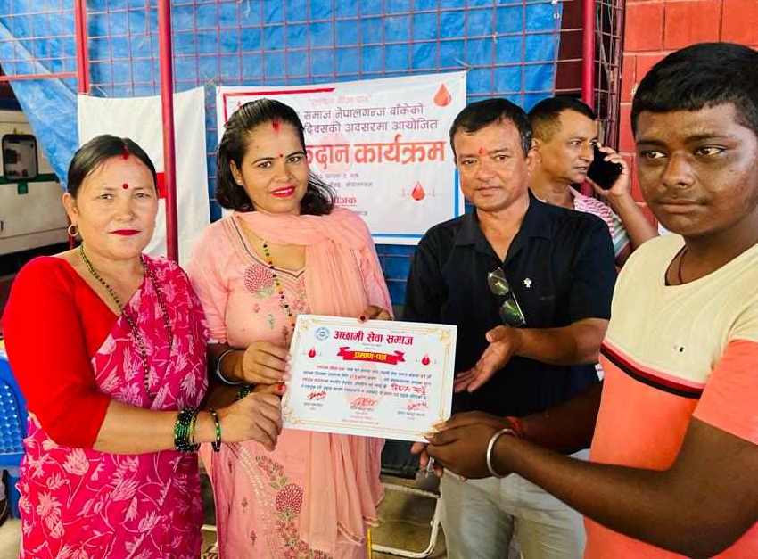 वह रक्तदान कार्यक्रम अछामी सेवा समाज बाँके नेपालगन्ज के अध्यक्ष पुष्कर बहादुर खड्का के अध्यक्षत में, राष्ट्रीय अनुसन्धान कार्यालय बाँके के उप–अनुसन्धान निर्देशक मोहन बहादुर कुँवर के प्रमुख आतिथ्य में सम्पन्न हुआ रक्तदान कार्यक्रम में महिला और पुरुष करके ७५ लोगों ने बडी उत्साहपूर्वक रक्तदान किया है ।