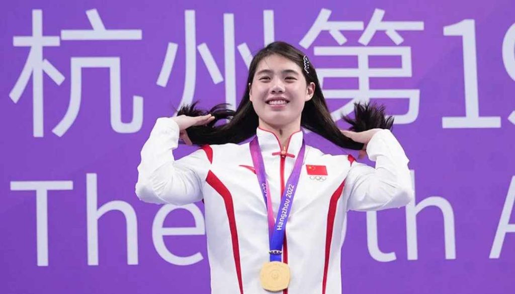 काठमांडू, १२ असोज – महिला ५० मिटर फ्रिस्टायल स्विमिङ में स्वर्णपदक विजेता चीनी खिलाड़ी झाङ युफेई हुई हैं । १९वां एसियाली खेलकूद, २०२२ के अन्तर्गत गुरुवार तक ६१० पदक के लिए खेल हो चुका है । जिसमें गुरुवार तक के खेल प्रदर्शन के आधार में चीन ९१ स्वर्ण, ५२ रजत और २६ कास्य सहित एक सौ ६९ पदक प्राप्त कर शीर्ष स्थान में है । इसी तरह दक्षिण कोरिया २४ स्वर्ण, २३ रजत, ३९ कास्य सहित ८६ पदक के साथ पदक तालिका के दूसरे दूसरे स्थान में है । जापान १८ स्वर्ण, ३० रजत और ३१ कास्य के साथ ७९ पदक प्राप्त कर तीसरे स्थान में तथा उज्वेकिस्तान ६ स्वर्ण, १० रजत और १५ कास्य सहित ३१ पदक के साथ पदक तालिका के चौथो स्थान में हैं ।