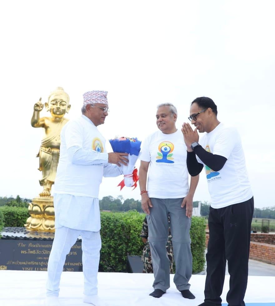 उन्होंने शान्ति और सद्भाव के प्रतीक लुम्बिनी के पवित्र भूमि में योग के अनन्त अभ्यास को उत्सव के रुप में मनाने के लिए उपयुक्त वातावरण प्रदान करने की भी बातें कही । राजदूत ने भारतीय राजदूतावास हरेक वर्ष लुम्बिनी विकास कोष के साथ सहकार्य कर अन्तर्राष्ट्रीय योग दिवस लुम्बिनी में मनाने की बात कही ।