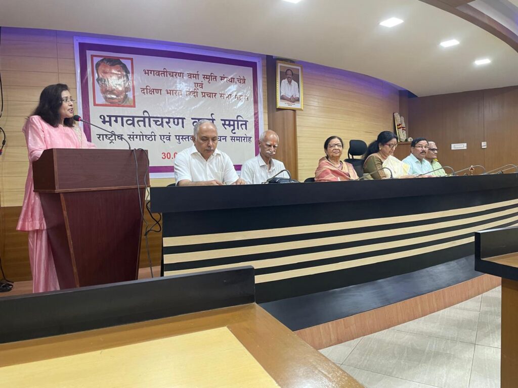 चेन्नई। दक्षिण भारत हिदी प्रचार सभा में भगवतीचरण वर्मा स्मृति संस्थान द्वारा स्मृति समारोह का आयोजन किया गया। प्रख्यात कथाकार डॉ सूर्यबाला ने कहा कि भगवतीचरण वर्मा व्यावहारिक जीवन के मंत्र द्रष्टा थे।वे मानते थे कि विश्वास, अनुभव और प्रयोग के बिना लेखन अधूरा है। उन्हें समझौते कभी रास नहीं आए। उनकी अनूठी तर्कशक्ति सच्चाइयों को खोलते हुए जीवन का साक्षात्कार कराती है। ‘ चित्रलेखा’ की धूम सिनेमा के साथ पाठकों के बीच आज भी कायम है।
