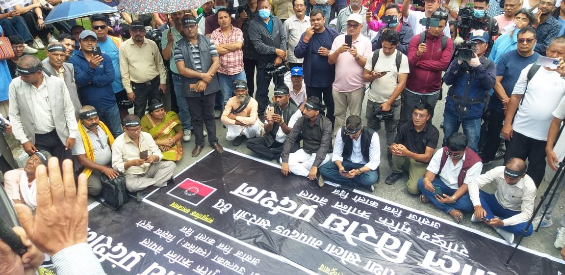 आज गैरन्यायिक सड़क तथा नदी के मापदण्ड को खारीज कर, बहुलराष्ट्रीय राज्य कायम कर, असोज तीन काला दिन, दलित अभियान की मांग को पूरा कर, भ्रष्टाचारी पर कारवाई कर, सहकारी पीडि़त को न्याय दे, नेपाः मण्डल कायम कर, स्वदेशवाद जिन्दावाद, राष्ट्रीय मुक्ति क्रान्ति नेपाल जिन्दावाद आदि के नारे से गूँज रहा था माइतीघर मण्डला ।