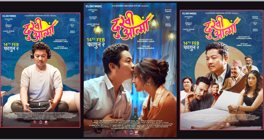 काठमांडू, १७ दिसम्बर । दीपेन्द्र लामा द्वारा लिखित और निर्देशित बहुप्रतीक्षित फिल्म ‘दुखी आत्मा’ का फस्र्ट लुक पोस्टर को जारी कर दिया गया । ३ अलग–अलग डिजाइन वाले पोस्टर में से एक में दयाहांग राई सिंगल हैं और दूसरे में वह और आंचल शर्मा प्यार में डूबे नजर आ रहे हैं । एक अन्य पोस्टर में दयाहांग के साथ आंचल, अनुप बिक्रम शाही, बुद्धि तमांग, दुर्लभ राय, लोकेंद्र उख्तर और अशांत शर्मा को दिखाया गया है । फाल्गुन २ को रिलीज होने वाला फिल्म का पोस्टर दर्शकों के बीच उत्सुकता और बढ़ाता नजर आ रहा है ।