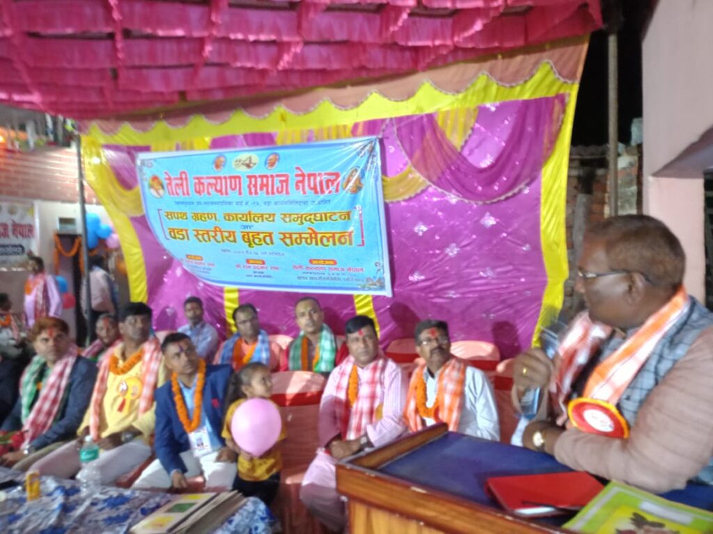 जनकपुरधाम/मिश्री लाल मधुकर । अगर जनकपुरधाम उप महानगरपालिका का तेली संगठित हो जाए तो आगामी मेयर तेली जाति का होना निश्चित है। उपरोक्त बातें नेपाल तेली कल्याण समाज धनुषा के अध्यक्ष ने शनिवार को जनकपुरधाम उप महानगरपालिका बार्ड 17के तेतरिया गांव में सुरेश कुमार साह के आवास पर आयोजित वार्ड स्तरीय सम्मेलन तथा कार्यालय उद्घाटन समारोह में प्रमुख अतिथि पद से बोलते हुए उन्होंने कहा। उन्होंने कहा कि हमारी आबादी जनकपुरधाम उप महानगरपालिका में सबसे अधिक है लेकिन कोई भी राष्ट्रीय पार्टी हमें न सांसद, विधायक, मेयर् का टिकट नहीं दे रहा है। इसलिए कि हम संगठित नहीं है।हम दुसरे के पिछलग्गू में रहते हैं। अगर हम आपसी भेदभाव हटाकर जीतने वाले उम्मीदवार को एक मुस्ट बोट दें। प्रजातंत्र में सभी को लड़ने का अधिकार हैं लेकिन घर सुमारी के बाद जो उम्मीदवार भारी पड़े।उसे जिताए।