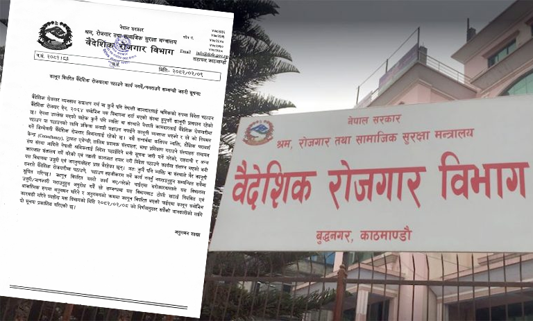 शुक्रवार को एक बयान जारी करते हुए विभाग ने स्पष्ट किया कि केवल विदेशी रोजगार अधिनियम के तहत विभाग के साथ पंजीकृत संगठनों को ही विदेशी रोजगार व्यवसाय संचालित करने या किसी भी नेपाली श्रमिक को मजदूर के रूप में विदेश भेजने की अनुमति दी गई है।