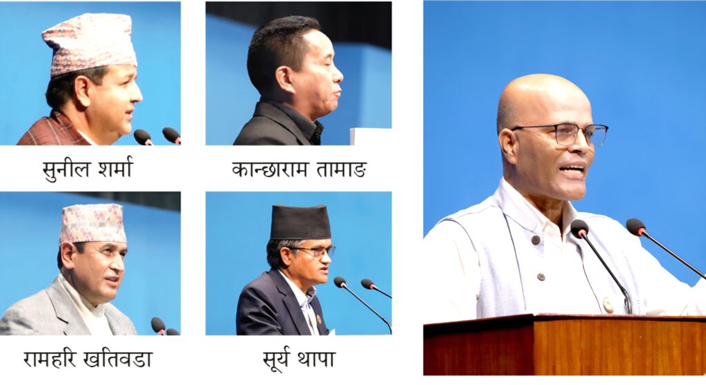 कांग्रेस सांसद डॉ. सुनील शर्मा ने संसद में भावनात्मक ढंग से सवाल उठाया—”क्या केवल पांच जिलों में ही नेपाली नागरिक रहते हैं? क्या अन्य ७२ जिले नेपाल में नहीं आते?” उन्होंने प्रधानमंत्री और मंत्रियों पर अपने-अपने निर्वाचन क्षेत्रों में बिना किसी औचित्य के भारी बजट आवंटित करने का आरोप लगाया और इसे “अघोषित ढंग से राज्य की लूट” कहा।