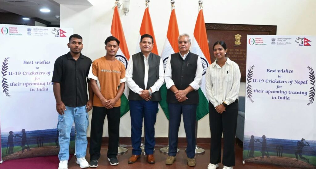 काठमांडू, 11 जुलाई 2025 — भारत और नेपाल के बीच खेल और सांस्कृतिक सहयोग को मजबूती देने की दिशा में एक महत्वपूर्ण पहल करते हुए भारत के काठमांडू स्थित दूतावास ने तीन प्रतिभाशाली नेपाली अंडर-19 क्रिकेट खिलाड़ियों के लिए भारत के भोपाल में एक महीने का पेशेवर प्रशिक्षण कार्यक्रम सुनिश्चित किया है।