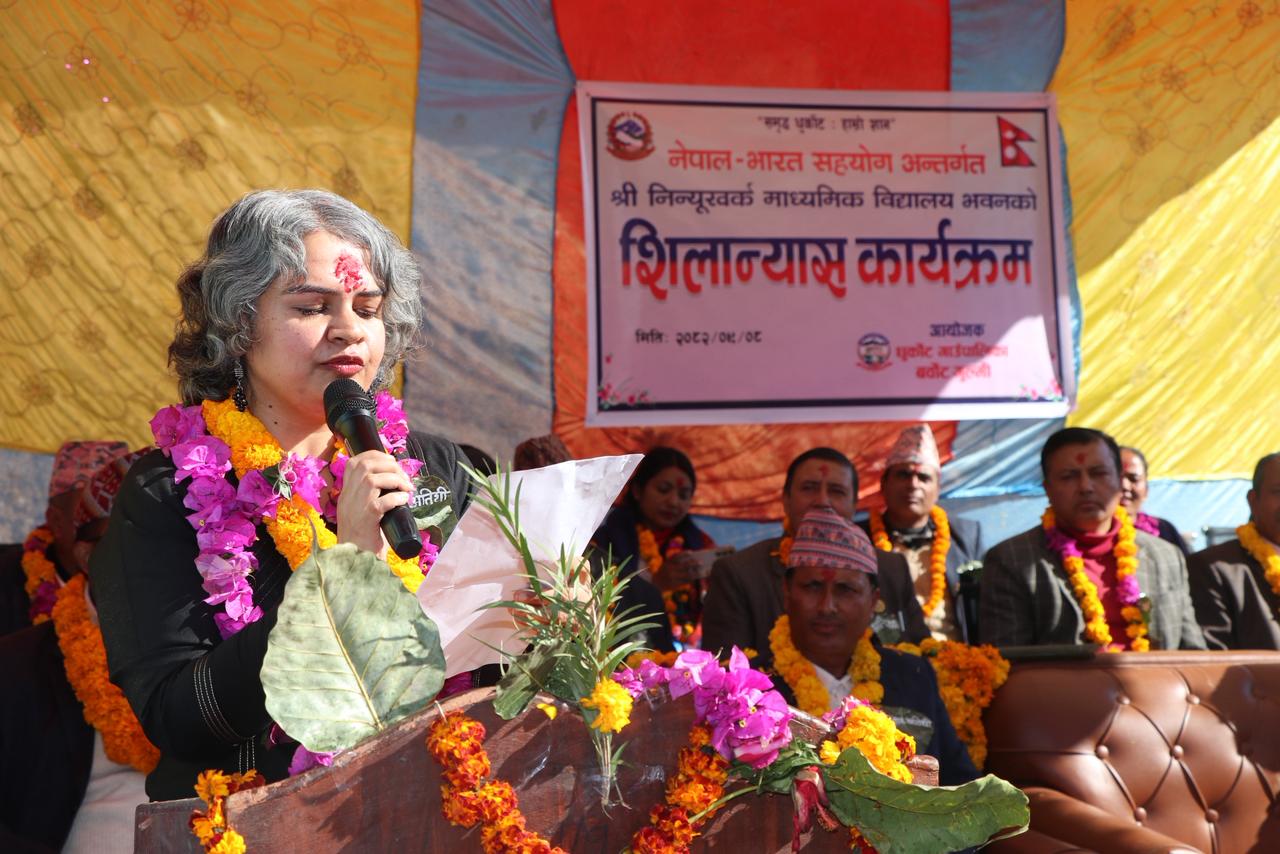 काठमांडू/गुल्मी, 2082 पौष 8 । नेपाल के लुम्बिनी प्रदेश अंतर्गत गुल्मी जिले के धुर्कोट गांवपालिका–3 स्थित श्री निन्यूखर्क माध्यमिक विद्यालय के नए भवन का शिलान्यास आज किया गया। यह शिलान्यास काठमांडू स्थित भारतीय दूतावास की काउंसलर श्रीमती गीतांजलि ब्रैंडन और धुर्कोट गांवपालिका के अध्यक्ष श्री भुपाल पोखरेल द्वारा संयुक्त रूप से किया गया।