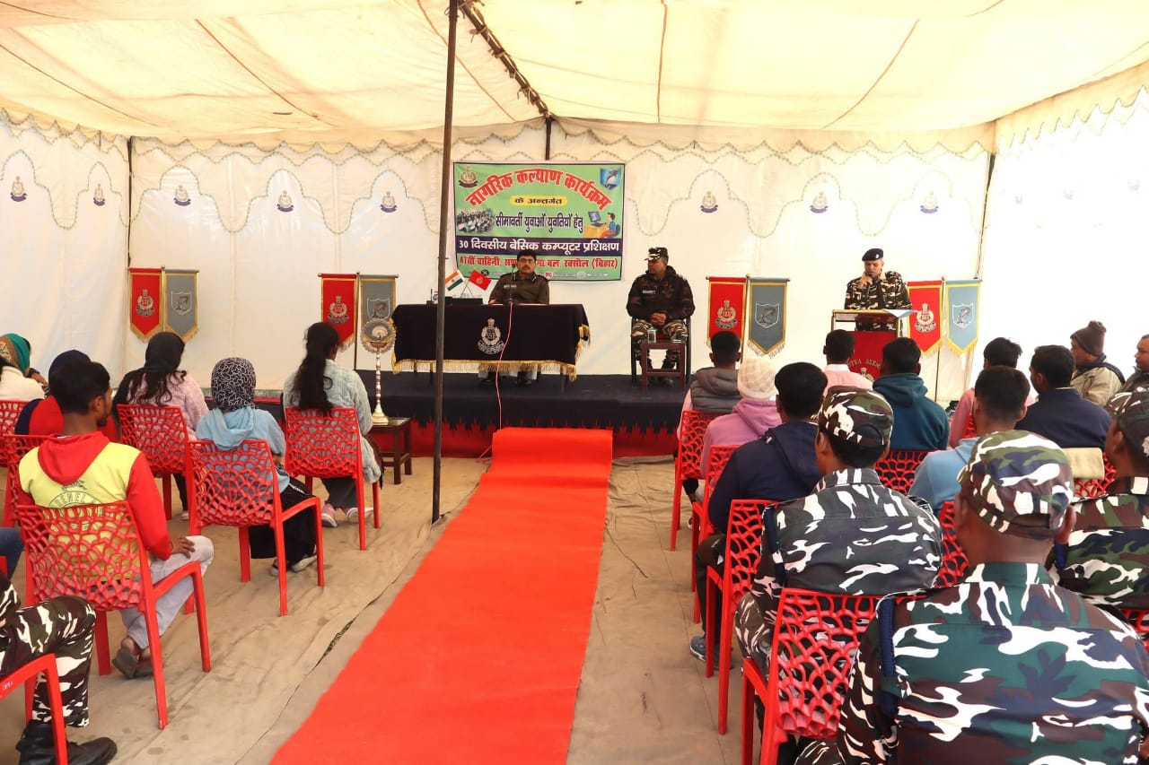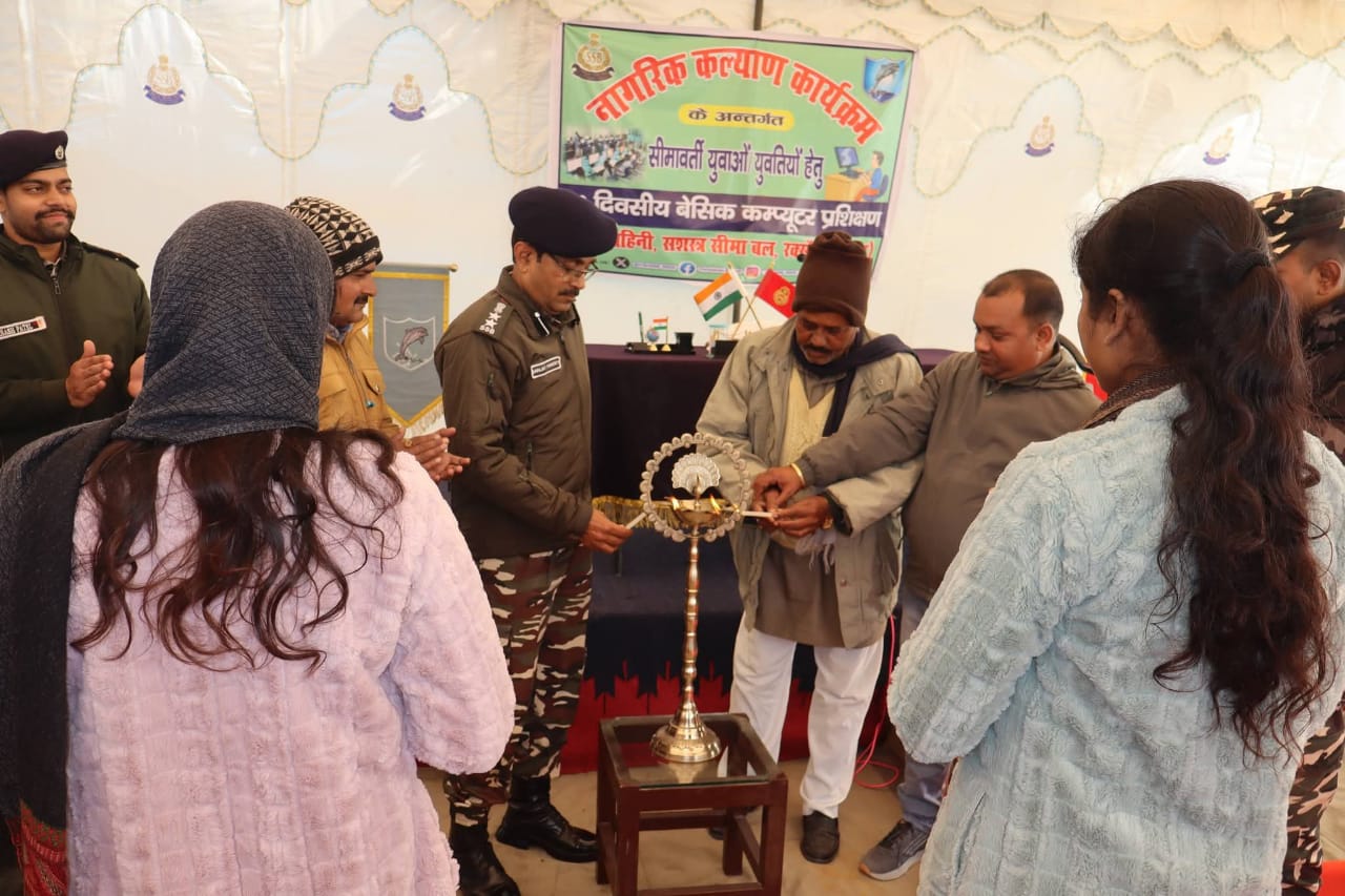 दिनांक- 15/01/26 को 47वीं वाहिनी सशस्त्र सीमा बल, रक्सौल के समवाय मुख्यालय – इनरवा में वाहिनी के कार्यक्षेत्र में स्थित ग्राम-इनरवा, खमिया एवं भलुहिया के 15 युवाओं/युवतियों हेतु नागरिक कल्याण कार्यक्रम के अन्तर्गत 30 दिवसीय बेसिक कंप्यूटर प्रशिक्षण का शुभारम्भ श्री संजय पाण्डेय, कमांडेंट, 47वीं वाहिनी एस.एस.बी., रक्सौल द्वारा दीप प्रज्ज्वलित कर किया गया ; साथ ही उन्होंने उपस्थित युवा/युवतियों व उनके अभिभावकगण को आधुनिक शिक्षा में डिजिटल साक्षरता/कंप्यूटर शिक्षा के महत्व के बारे में तथा राष्ट्र के निर्माण में युवाओं की सक्रीय भागीदारी, देश प्रेम की भावना और राष्ट्रीय एकता के विषय में विस्तृत चर्चा की व युवाओं/युवतियों को अच्छे से पढाई कर जीवन सुधारने एवं आत्मनिर्भर बनने हेतु प्रेरित किया |
