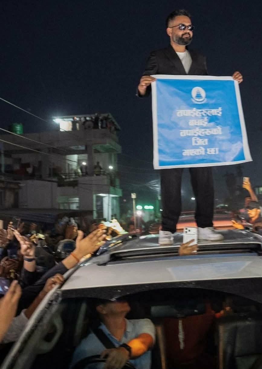 काठमांडू, फागुन २३ – राष्ट्रीय स्वतंत्र पार्टी (रास्वपा) से झापा–५ में निर्वाचित बालेन्द्र साह (बालेन) ने अपने मतदाताओं को धन्यवाद दिया है ।जैसे ही अंतिम मतपरिणाम सार्वजनिक हुई, बालेन अपने समर्थकों और मतदाताओं के समक्ष पहुँचे और उन्हें धन्यवाद दिया ।
