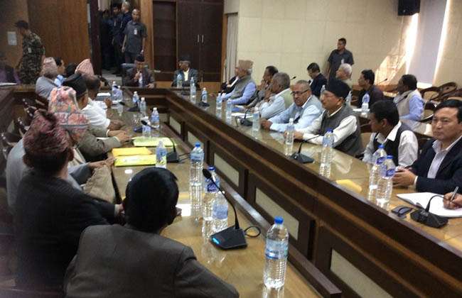 गठबन्धन आवद्ध नेताओं ने आज आन्तरिक बैठक हो ने की बात करते हुए सर्बदलीय बैठक में उपस्थित न होसक ने का संदेश सरकार को भेजा था ।