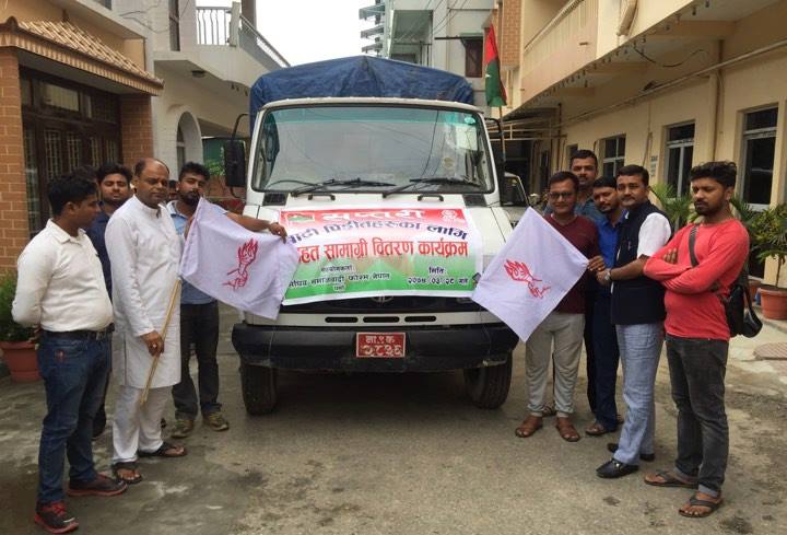 बिरगंज २८ असार | प्रकृति कहर मे परे सप्तरी जिला के बाढ़ पीड़ित के लिय फोरम नेपाल पर्सा ने करीब १० लाख बराबर का सहयोग आज पठाया है। राहत मे मुख्य रूप मे फोरम नेपाल मधेश प्रदेश के कोषाध्यक्छ बिजय कुमार सरावगी ने भूमिका निर्वाह किया है। सप्तरी पठाये सहयोग मे ५०० थान त्रिपाल और७५ बोरा चामल है जो फोरम ने बिभिन दाताओ से सहयोग लेके जुटाया है। सहयोग संकलन लेके फोरम के प्रदेश सचिव राधा कृष्ण रौनियार के नेतृतव मे सप्तरी पठाया गया है इसकी जानकारी फोरम नेपाल पर्सा के सभापति प्रदीप यादव ने दी है। राहत सहयोग को उचित व्यस्थापन के लीये जिला प्रशासन कार्यालय पर्सा ने सप्तरी को समेत जानकारी दी है। टोली को बिरगंज से बिदा करने के समय पर फोरम नेपाल बिरगंज महानगर के मेयर पद के उमेदवार बिजय सरावगी, फोरम नेपाल पर्सा जिला के उपसभापति मंजूर अंसारी, युवा नेता सुन्दर कुर्मी, पत्रकार पवन तिवारी, बिद्यार्थी नेता निखिल बर्णवाल मौकेपर मौजूद थे और टोली को फोरम का झण्डा दिखा करबिदा किया था।