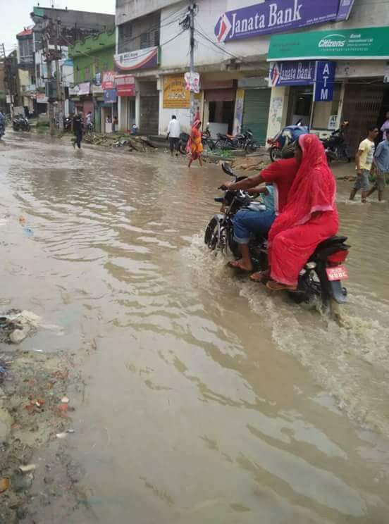 कैलास दास , जनकपुरधाम, २७ साउन । घनघोर वर्षा के कारण जनकपुर जलमग्न हो गया है । वर्षा के कारण जनकपुर का प्रसिद्ध भानु चौक, जनक चौक, मिल्स एरिया, कदम चौक, विद्यापति चौक, देवी चौक, जिरोमाइल सहित सभी रास्ता अवरुद्ध हो गया है । पानी और गड्ढा के कारण सवारी दुर्घटना बढ रही है ।
