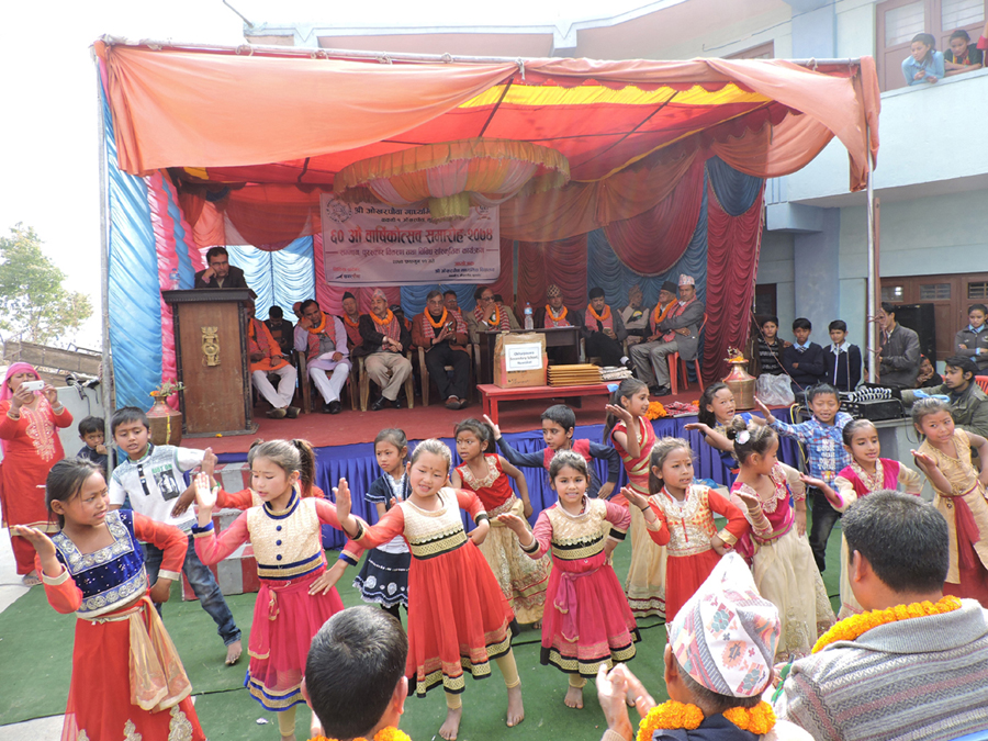 कार्यक्रम में विद्यालय व्यवस्थापन समिति के पूर्व अध्यक्ष नरेन्द्र फुयाल ने विद्यालय की प्रगति विवरण प्रस्तुत करते हुए कहा कि यह विद्यालय विभिन्न दाताओं की सहयोग से ही आगे बढ़ रहा है । उनके अनुसार बोधनाथ प्रतिष्ठान, केयर एण्ड फेयर, राउण्ड टेबल नेपाल जैसे विभिन्न संघसंस्था और अन्य समाजसेवी व्यक्तियों की सहयोग, विद्यालय संचालन और गुणस्तरीय शिक्षा के लिए महत्वपूर्ण साबित हो रही है ।