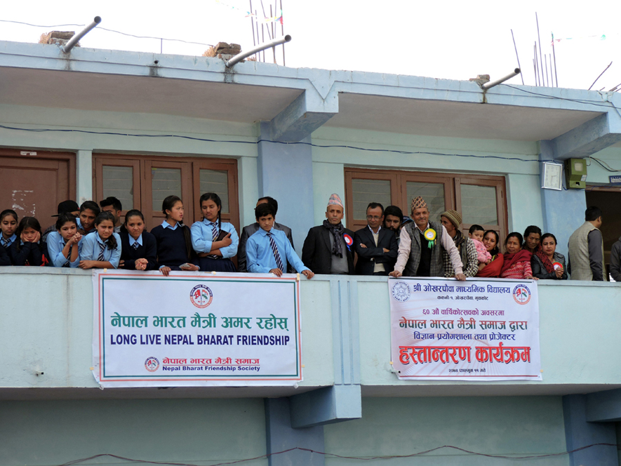 नेपाल भारत मैत्री समाज ने नुवाकोट स्थित ओखरपौवा माध्यममिक विद्यालय को विज्ञान प्रयोगशाला के लिए आवश्यक प्राविधिक सहयोग तथा प्रोजेक्टर हस्तान्तरण किया है । विद्यालय की ६०वें वार्षिकोत्सव की अवसर में शुक्रबार आयोजित एक विशेष कार्यक्रम मार्फत उक्त सहयोग हस्तान्तरण किया गया ।
