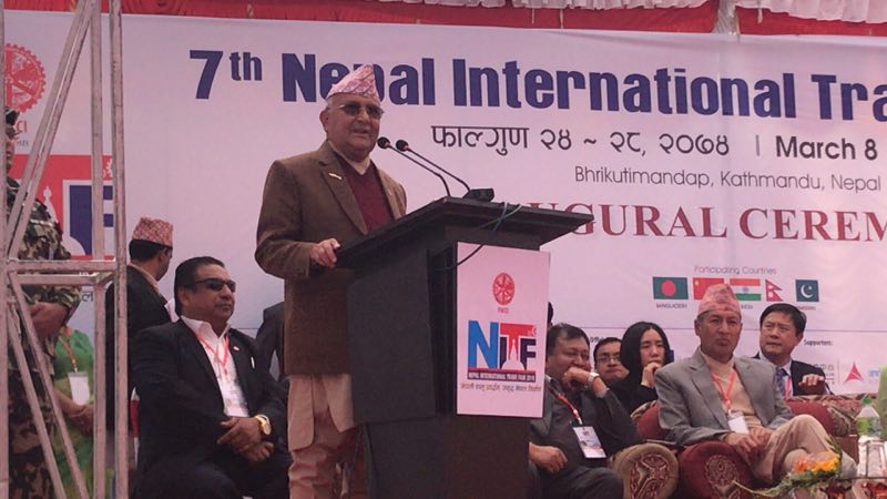 उद्घाटन के दौरान अपने संबोधन में प्रधानमंत्री ओली ने कहा कि नेपाल के आर्थिक विकास और निर्यात प्रवद्र्धन के लिए सभी नेपालियों को मिलकर काम करना होगा । आगे उन्होंने कहा कि भ्रष्टाचार और अपचलन के खिलापÞm सरकार सख्ती के साथ पेश आएगी ।