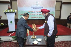 आज (२५ फागुन, २०७४) भारतीय दूतावास, काठमाण्डो ने होटल अन्नपूर्ण, काठमाण्डौ में चयनित २०० योग्य नेपाली विद्यार्थी को बधाई ज्ञापन कर स्वर्ण जयन्ती छात्रवृत्ति के लिए योग्यता का प्रमाणपत्र प्रदान किया गया । नेपाल के विदेश सचिव माननीय श्री शंकरदास वैरागी प्रमुख अतिथि थे । भारतीय राजदूत माननीय श्री मञ्जिव सिंह पुरी ने विद्यार्थियों को बधाइ दी और पेशागत उपलब्धि हासिल करने का सुझाव दिया तथा नेपाल भारत सम्बन्ध को और भी मजबूत बनाने की उम्मीद की । नेपाल सरकार शिक्षा मन्त्रालय के वरिष्ठ पदाधिकारी और विभिन्न विश्वविद्यालय तथा कालेज उपकुलपति, डीन, रजिस्ट्रार तथा प्राध्यापक कार्यक्रम में सहभागी थे ।