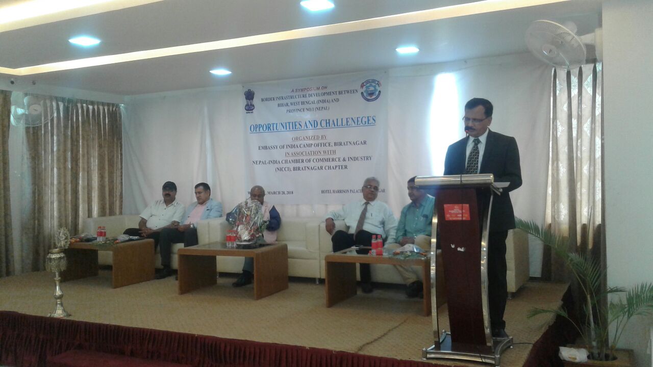 नेपाल स्थित भारतीय राजदूतावास कैम्प आफिस बिराटनगर और नेपाल भारत उद्योग वाणिज्य संघ विराटनगर चैप्टर के संयुक्त आयोजना मे प्रदेश—१ के सीमा से जुड़े व्यवसायिक और पर्यटकीय विकास के लिए आयोजना किया गया सिम्पोजियम अर्थात संगोष्ठी का साक्षीकिनारा बनने का अवसर प्राप्त हुवा । गजब का संगम था नेपाल और भारत के दिग्गजो का । प्रदेश को आर्थिक एवं समग्र मे सम्पन्नता की राह पे कैसे आगे बढ़ाया जा सकता है इस के लिए मित्र राष्ट्र का पहल काबिले तारिफ है ।
