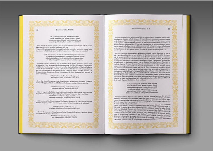 - इस्कॉन के संस्थापक आचार्य श्रीमद् एसी भक्ति वेदांत स्वामी श्रील प्रभुपाद ने गीता प्रचार के 50 साल पूरा करने के उपलक्ष्य में इसे तैयार किया गया है। इसे छापने के लिए इस्कॉन के सभी केंद्रों से धनराशि जुटाई गई। 11 नवंबर को इसे इटली के मिलान शहर में प्रदर्शित किया गया था।