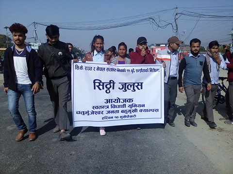 अनेरास्वावियु की केन्द्रीय सचिव आरती लामा ने बताया कि सहमति के बुंदा नम्बर २ और ६ के सम्झौता विरुद्ध विद्यार्थियों ने सिटी जुलुस निकाला है ।
