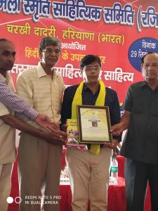 *चरखी दादरी (हरियाणा)* : निर्मला स्मृति साहित्यिक समिति ;'(रज़ि.), चरखी दादरी द्वारा 29 सितंबर 19,रविवार को स्थानीय सरस्वती विद्या विहार सभागार में ‘हिंदी उत्सव’ के उपलक्ष्य में अंतर राष्ट्रीय सहित्यकार सम्मान समारोह का आयोजन सम्पन्न हुआ। कार्यक्रम में मुख्य अतिथि के रूप में प्रो. यशवीर सिंह , विशिष्ट अतिथि प्रो.रूप देवगुण एवम प्रो. नरेश मिश्र था अघ्यक्ष के रूप में डॉ. रामनिवास मानव उपस्थित थे। इस अवसर सम्पूर्ण भारत सहित विदेश से पधारे 101 साहित्य मनीषियों को सम्मानित किया गया।